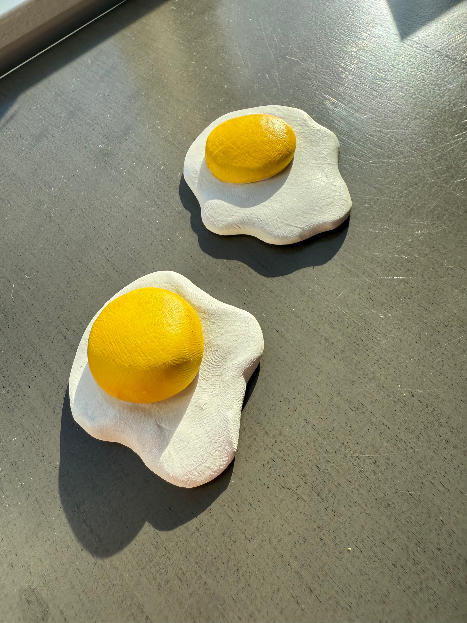 Our "Breakfast" magnets are handmade from clay and hand painted with acrylic paint.