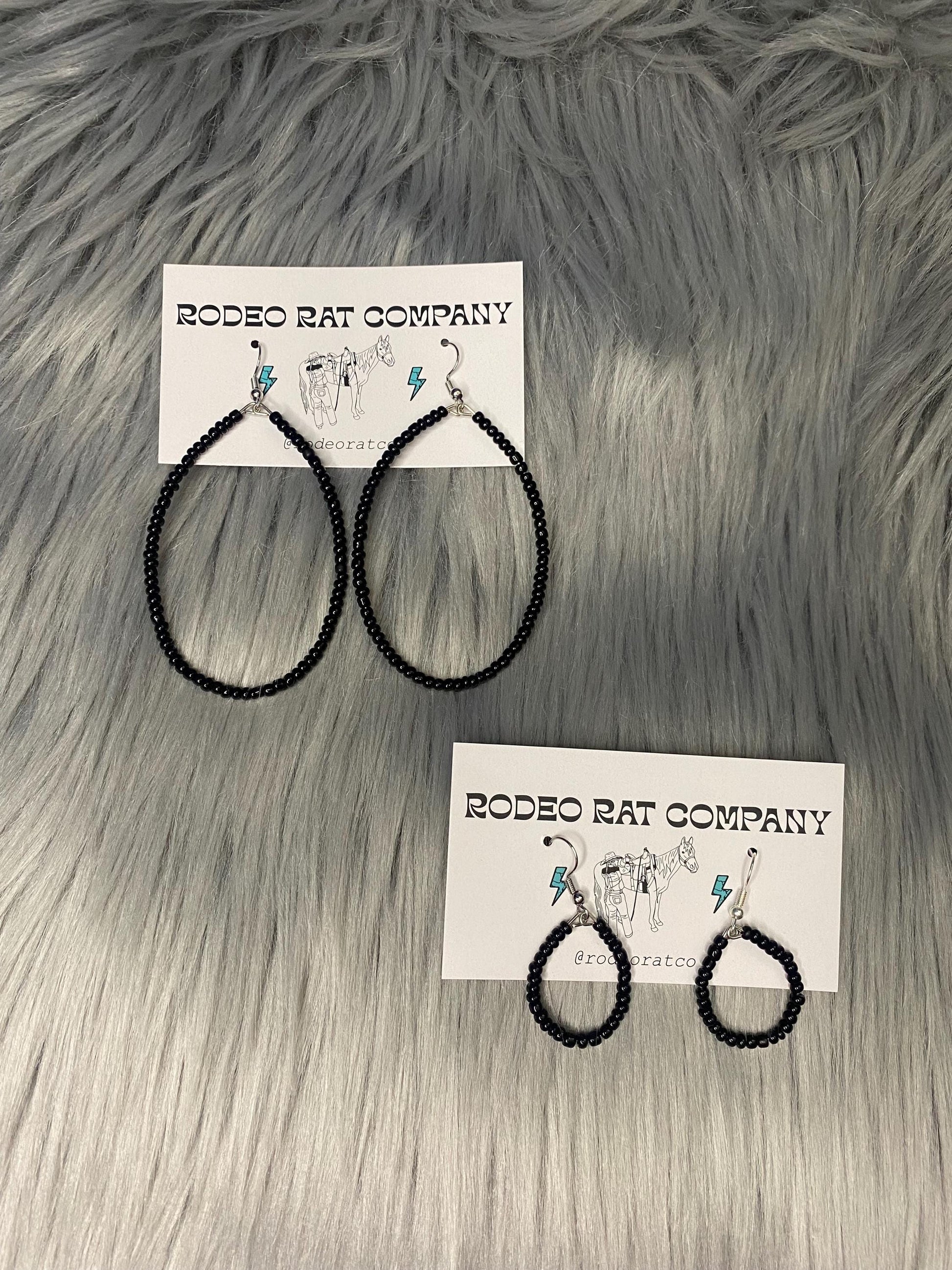 Tear hoops are made from black glass beads. Strung on beading wire secured with ear wire for closure.