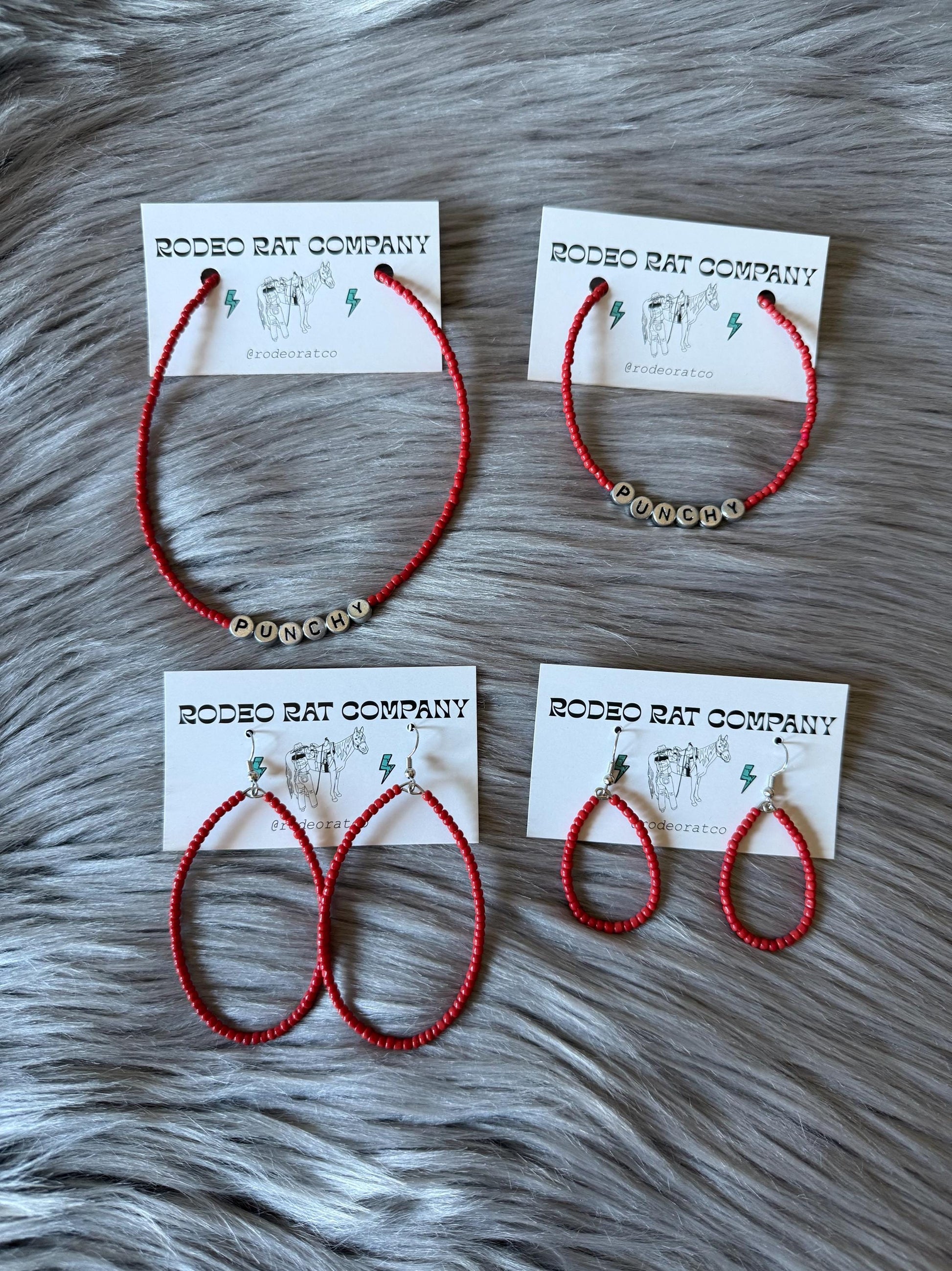 Our “Punchy” jewelry patterns comes in a choker, anklet, medium tear hoops, small tear hoops and a jewelry set.