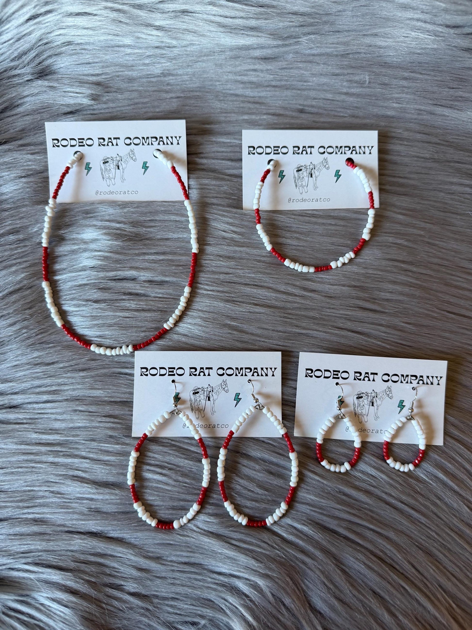 Our “River Rat” jewelry pattern comes in a choker, anklet, medium tear hoops, small tear hoops and a jewelry set!